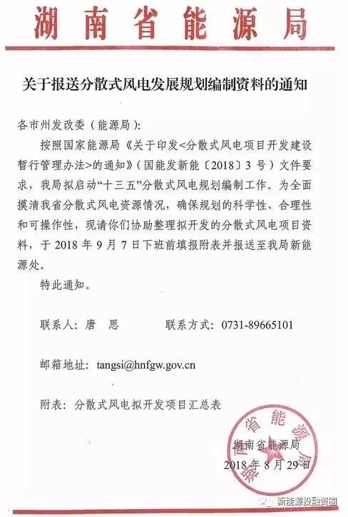 湖南省能源局《关于报送分散式风电发展规划编制资料的通知》